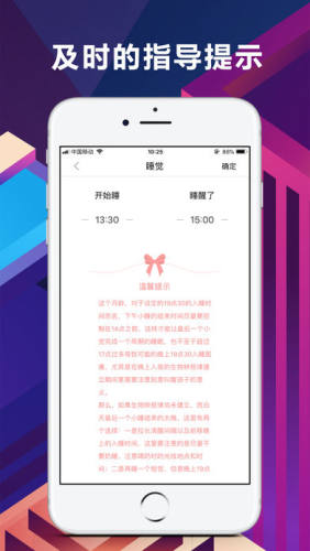 功能二,及时的指导提示:在使用app的过程中,app将通过各种提醒功能对生活安排的原因给予指导和解析,让您在使用的同时去理解原理和知识。