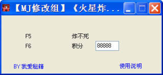 火星炸弹人是一款配置要求很低的冒险动作游戏,游戏整体性不强,但是对于没什么要求的玩家来说,此游戏还是可以玩一下的,玩这种炸弹人操作键只有几个但操作速度要求快,有点小挑战。本补丁由MJ修改组提供,可以修改炸不死,积分两项功能。