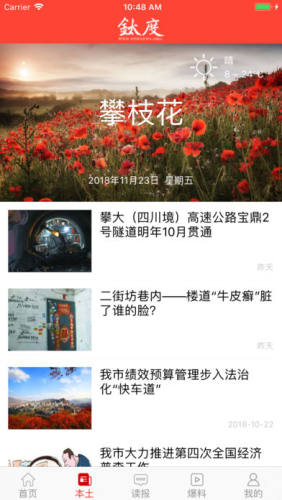 【本土资讯】汇集攀枝花东区、西区、仁和区、米易、盐边等攀枝花三区两县的天气、美食、交通、生产及新闻资讯,只需通过手机定位,就可轻松获取身边信息。