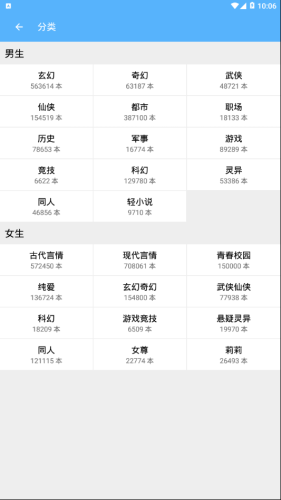 2、界面设计简洁有特色,拥有讨论区、排行榜以及题材分类等,建议喜欢的书籍一键加入书架;