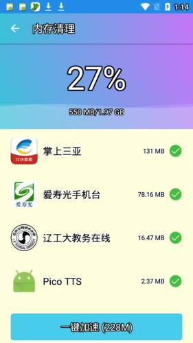 强力加速使手机运行更流畅,一键清理快速解决空间不足问题。