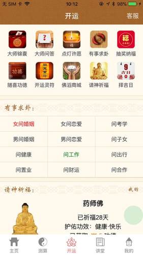 佛滔命理大师app是一款功能强大并实用的手机算命软件,软件拥有配对、测试、灵签、起名、周公解梦、黄历查询等等诸多功能,觉得不错的朋友欢迎前来下载使用。