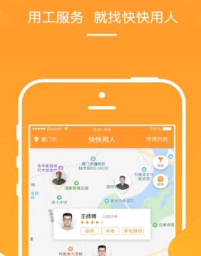 快快用人是一个综合性的用工服务软件,集用工信息发布、约单、O2O上门服务功能于一体,提供周边生活服务和专业技能服务,服务无所不有,尽在快快用人。