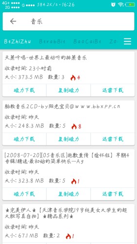 3、可以进行小说、视频、音频以及图片等搜索,直接进行磁力链接复制或者下载即可。