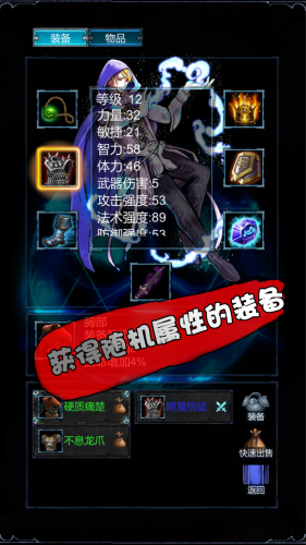 在游戏中你还将遭遇不同的事件,获得随机属性的装备,强化自身,挑战更高的难度.