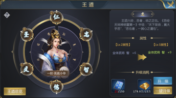 王道六德可提升全体武将战力,为主公争霸如虎添翼,助力主公一统江山。