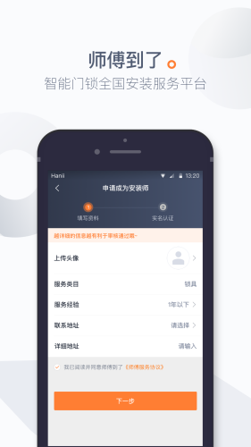 师傅到了面向所有智能门锁安装师傅,只要您有智能门锁安装经验,就有海量订单等您来接。
