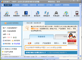 2.本产品更可与这些企业进行实时沟通联络;也是企业开拓市场的必备软件业务助手,是国内最大最精准的也是唯一的三千万级企业名录实时搜索软件。