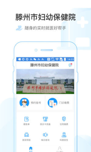 “滕州市妇幼保健院”旨在医院现有服务基础上,通过预约挂号,报告单查询,门诊缴费,住院预交,智能导诊,科室医生,健康资讯,健康百科等多种简化患者就医流程功能,