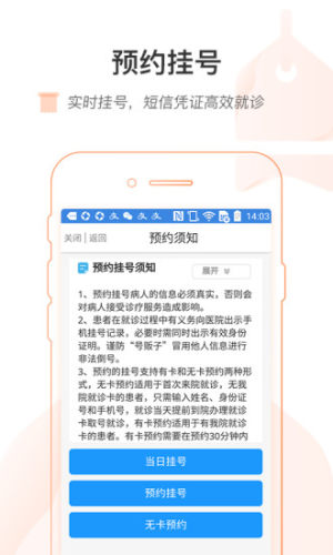 1.预约挂号:掌上预约挂号,短信凭证高效就诊;