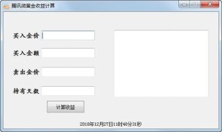 腾讯微黄金收益计算软件是一款采用易语言编写的计算工具,能够根据买入金价、买入金额、卖出金价、持有天数来计算收益。