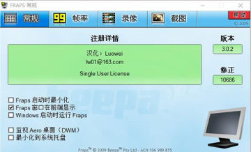 2、然后运行“fraps.exe”打开软件,软件破解成功,可以免费使用了。