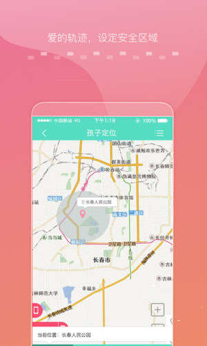 4.爱的轨迹:实时跟踪定位,查看历史轨迹,掌控孩子的行为踪迹。