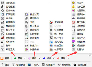 印前检查:可以进行印前预检,如去除文字飞边,文本转曲,4色黑转单黑等等(按住ctrl再点击菜单即可弹出印前检查设置项)