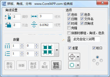 四、拼版折手完成后,我们通常需要打上角线、条标和印刷的相关的版号说明。在拼版完成后,只需要点击批量角线。即可一键完成。