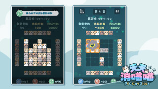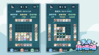 核心玩法方面,通过上下左右四个方向来控制猫咪方块的位置,当有超过3个以上的方块相同时候,会触发魔法,将猫咪消除,从而获得更多的得分。