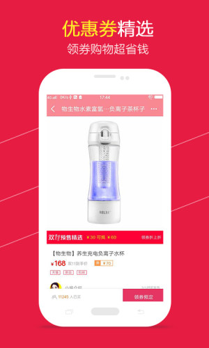 优惠券精选是一款全新的购物省钱软件。优惠券精选app为你精挑细选各种淘宝优惠券,助你购物轻松省钱。喜欢购物的朋友快来下载试试看吧!