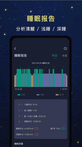 感知并记录下你的睡眠过程,为你生成可视化的睡眠报告,迅速掌握自己的睡眠数据。让你不用手环,也可以同样了解自己的睡眠状态!