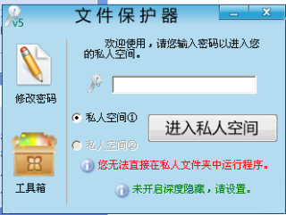 1.本软件可以在您的电脑上生成一个私人的空间,并且是无法打开的,只有输入正确的密码才够进入您所专属的私人空间。