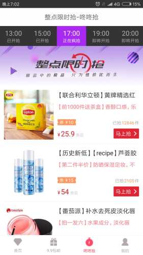 4、整点限时抢:各种网上各种好货,整点抢购,优惠更大!