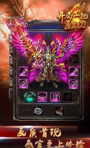 开局一把刀手游是一款专为广大喜爱玩魔幻类游戏的玩家打造的经典传奇游戏,这款游戏有着最为精致的游戏画面,有着最为炫酷的游戏技能特效,多元化的游戏玩法,给您带来最佳的游戏体验!