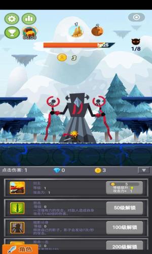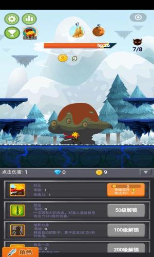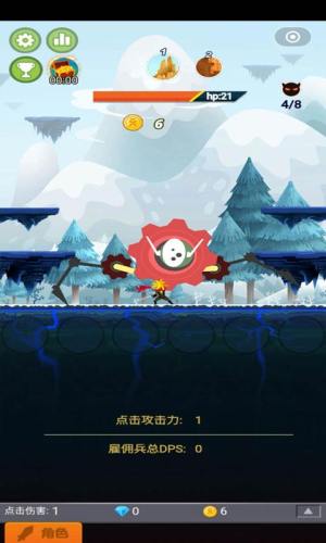 游戏中玩家要不断的点击屏幕来消灭一个又一个的怪物。游戏里玩家每消灭一个怪物都会获得金币,获得的金币可以强化自己或是换取装备。每个关底的boss玩家要是没有在规定时间能消灭掉就会释放技能。