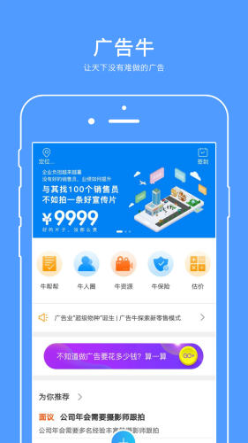 广告牛是定位专注于广告业互联网共享的平台,致力于通过互联网平台整合“企业主”和“广告人”,实现平台中介化