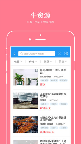 汇集广告行业上万各类优质制片资源,包括剧组拍摄场景,会议场地,活动场地等。拍摄找不到理想的场景?别担心,这里有各种风格类型拍摄场地任你选。