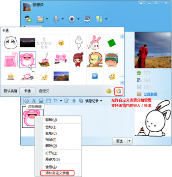 支持表情的添加、创建分组管理、表情转移等操作