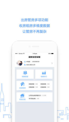 主体功能包括:出租房源、管理房源及针对管家和销售人员的销售数据,可实现app上出租房屋、管理房源和销售数据查看