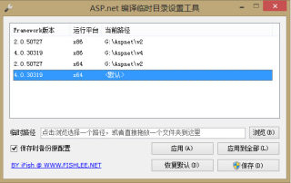 ASP.net运行的时候会动态生成大量的文件,包括日志、编译中间文件和临时文件以及影像程序集等,默认的情况下全部在系统目录中。如果你和我一样有着洁癖不喜欢在系统目录中存在这些临时文件的话,这个工具可以帮你转移到其它地方。