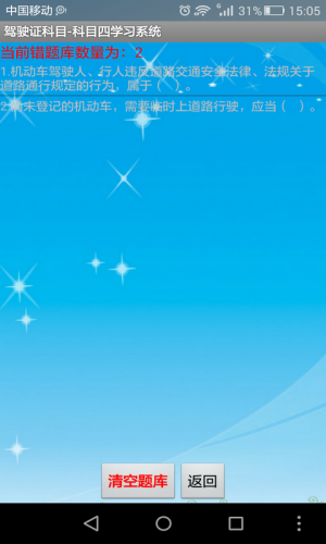 本APP是一个模拟驾照科目一的理论考试系统,具有顺序练习、随机练习、模拟考试三种做题方式,