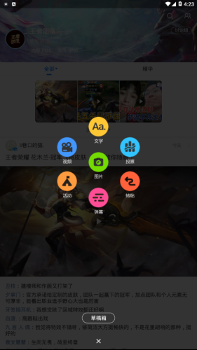 王者部落还提供了独创的空间弹幕新玩法,用王者部落,就学会了弹幕社交新姿势。