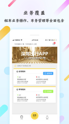 产品功能:自驾、带驾、接机、送机、半日租业务一条龙处理;车辆上架、追踪,实时掌握车辆状态;司机轻松完成业务处理