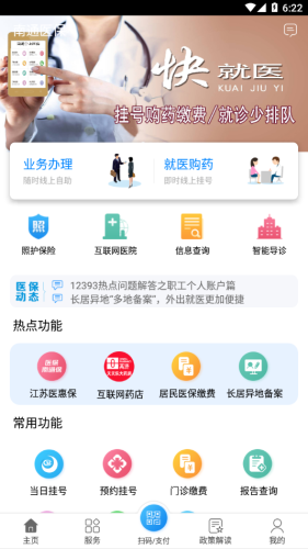 其面向南通市医保参保人员提供定点单位预约挂号、诊间缴费、就医购药个人现金和医保基金“一键式”支付和住院押金线上缴纳服务;提供医保定点单位信息、医保药品(诊疗项目)目录、政策法规、政策口径、热点问答等公共资讯和个人医保权益查询;