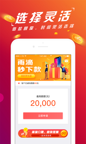 “雨滴分期”APP是一款国内发展较快的互联网金融应用,旨在为有借款需求的用户精心打造简洁高效、快速安全的纯线上借款服务。