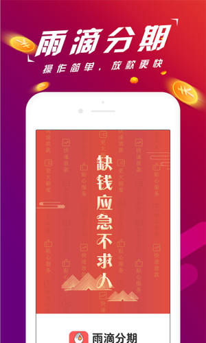 雨滴分期是一款专注于小额贷款的app。使用雨滴分期app,就能为你提供专业的线上借贷服务,从此借钱不求人。平台借贷门槛低,只要有身份证就能借,无需任何抵押,无需面签。有需要的朋友快来下载吧!