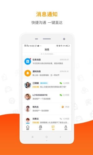 为盈众员工提供最便捷的与客沟通工具,实现客户动态管理,从而为盈众车主带来更加卓越的用车服务体验。