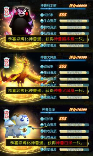 4、上线送50000绑定元宝,9999999铜钱,88888银票,免费赠送异兽·鲲坐骑,次日免费送神兽、送时装