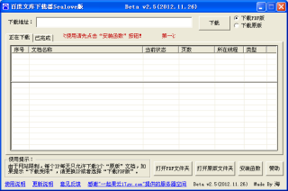 百度文库下载器Sealove版可以帮助网友免积分轻松下载百度文库中的原版文件,如word、excel、ppt等,也可下载为PDF,欢迎下载体验。