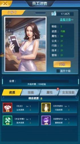 挑战关卡,商业谈判,收购各公司,让各金融巨头每天向你汇报工作和业绩。随着公司规模提升,自动解锁招纳更多的优秀人才前来效力。