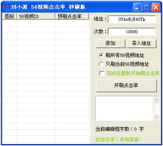 刘小源制作的56视频点击率软件可以轻松帮助你增加56视频的人气,秒刷版的速度更快,欢迎下载体验。