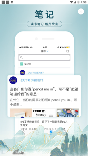 读者通过读书笔记可以在阅读时记录下自己的感悟亦或是自己觉得比较经典的段落或句子,阅读别人的文字,记录自己思想;