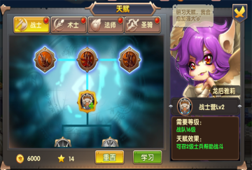 战士天赋偏向单体的高输出,对BOSS战有比较不错的效果,但对于较多小兵的关卡会有无法及时清完的风险,需要在队伍中加入有aoe伤害的英雄。