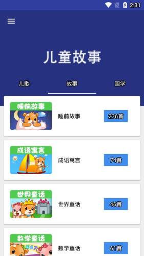 囊括了儿童故事,睡前故事,有声故事,儿歌,儿童读物,讲故事,绘本,漫画,视频,听书,童话,童谣,古诗,英语,胎教,三字经等上万本宝宝喜欢的中、英文有声故事绘本。