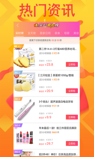 想要更多专属优惠?没关系,搜罗了各类爆款单品,每天10余个场次轮番上阵,巨惠商品买买买不停!还有"精选推荐”“熊猫优选”,“爆款返场等多种特色内容等你体验!