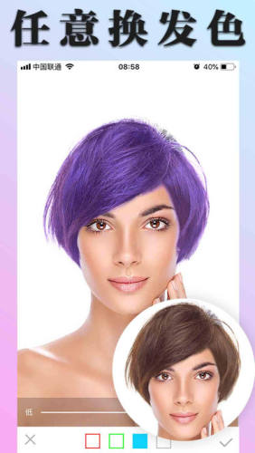 【智能换发色】可以任意调整每个发型的颜色,轻松发现让自己最美最帅气的头发颜色;