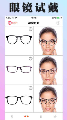 【智能眼镜试戴】提供几百款目前最新款式近视眼镜、太阳眼镜,只需一键即可实现眼镜真实试戴效果;