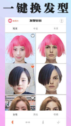 【智能换发型】打开app只需换成自己的照片,无需其他操作,即可一次性显示并浏览您更换500多款发型后的长相效果,轻松找出使您最美/最帅的发型;