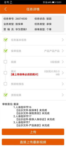 营销员登录以后可以创建新的任务,创建任务分为基础信息录入模块和影像采集上传模块。